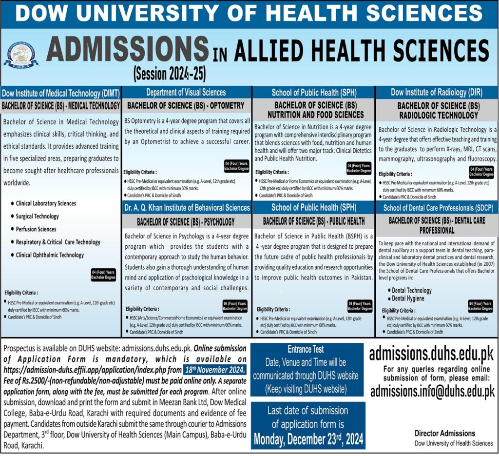 Online Application Form PhD Admission Criteria - Pharmaceutical... read moreAdmissions in One Year Diploma Program for On-Job Radiographers at Dow Institute of Radiology