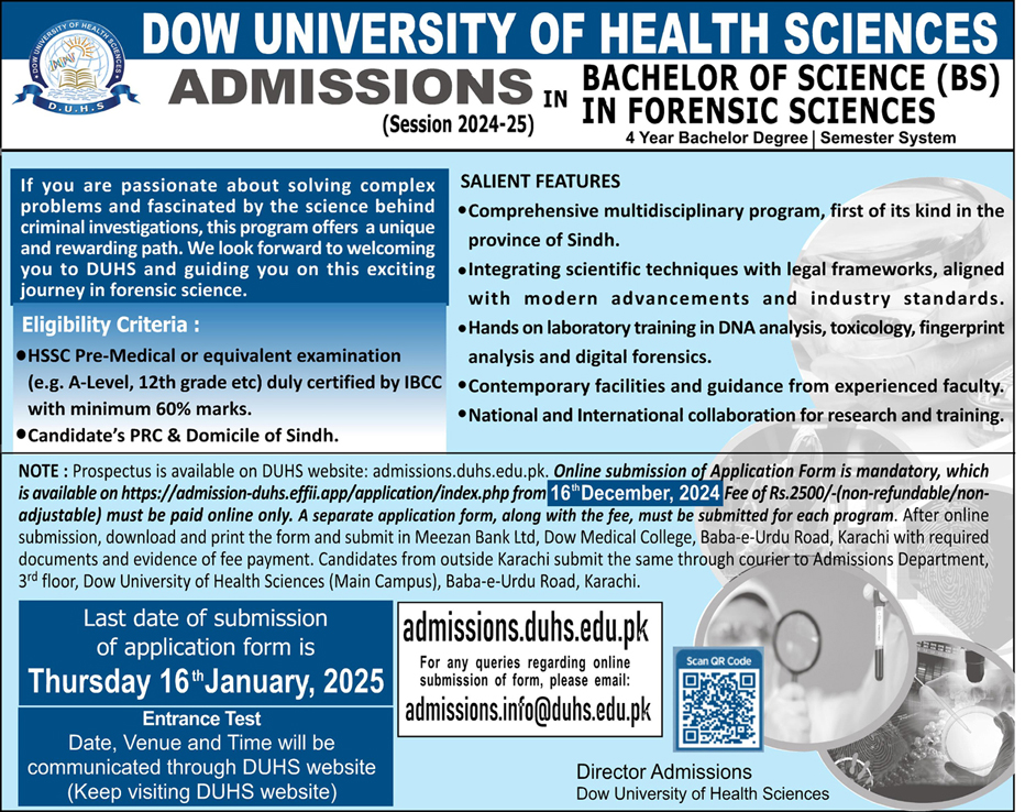Online Application Form PhD Admission Criteria - Medical... read moreADMISSIONS FALL 2024 (UNDERGRADUATE) – INSTITUTE OF BUSINESS AND HEALTH MANAGEMENT (IBHM), DUHS