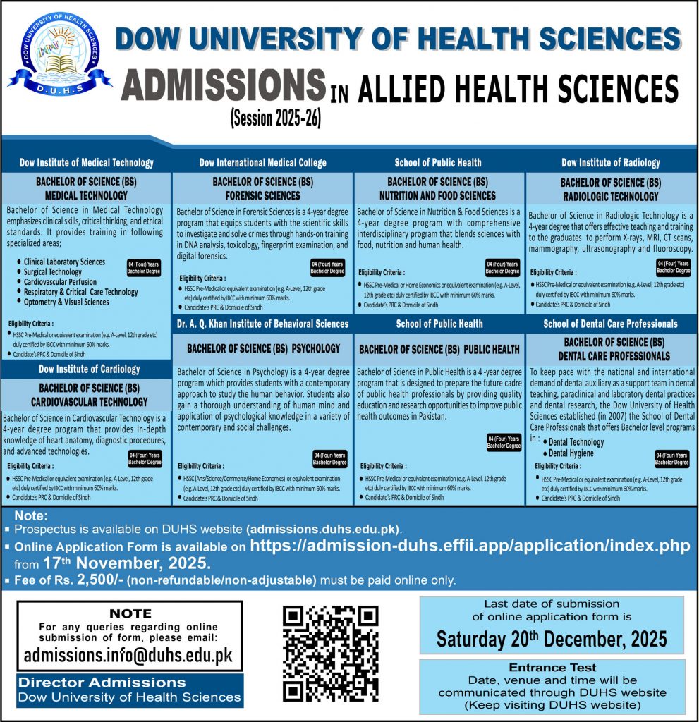 Institute of Business and Health Management (IBHM), DUHS Diploma Admissions