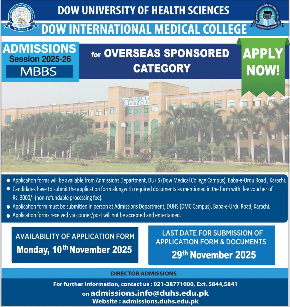 Admissions in MBBS, Session 2025-26 for Overseas Sponsored Category at DIMC