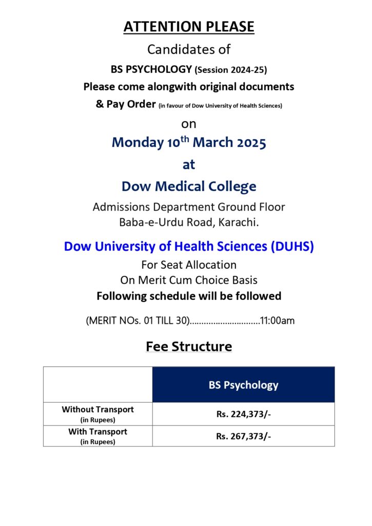 ATTENTION PLEASE – Candidates of BS PSYCHOLOGY (Session 2024-25)