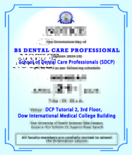 NOTICE – ORIENTATION DAY OF BS DENTAL CARE PROFESSIONAL (SESSION 2024-25)