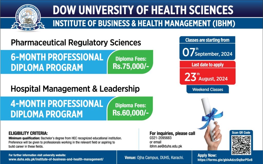 Professional Diploma Programs by Institute of Business & Health Management (IBHM), DUHS