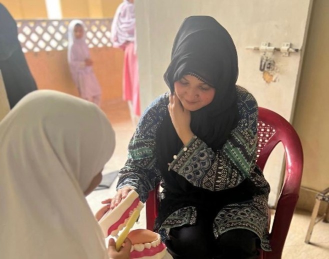 Our Dental team comprising of 10 undergraduate students lead by Dr. Rida Batool. Dental and Oral Health examination of these children were performed followed by recording their oral hygiene habits including tool and frequency for cleaning teeth, betel nut consumption, and use of Miswak.