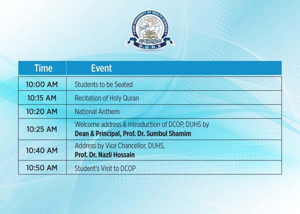 Orientation Day PHARM-D (MORNING & EVENING PROGRAM) (SESSION 2025-26) (DOW COLLEGE OF PHARMACY – DCOP)