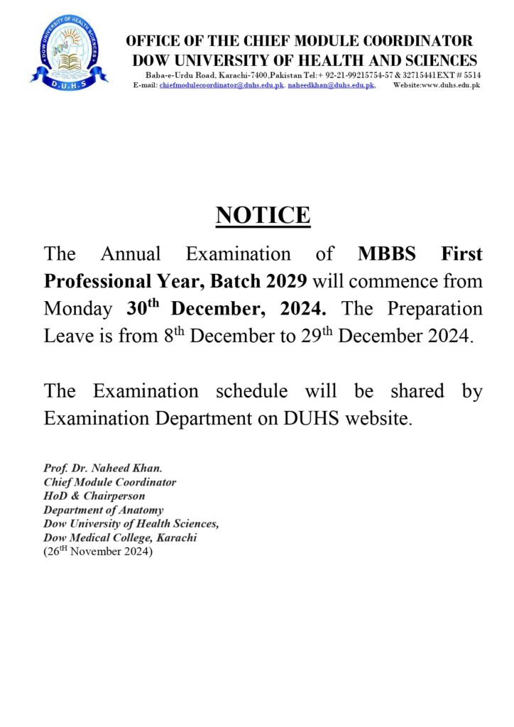 Annual Examination of MBBS First Professional Year, Batch 2029