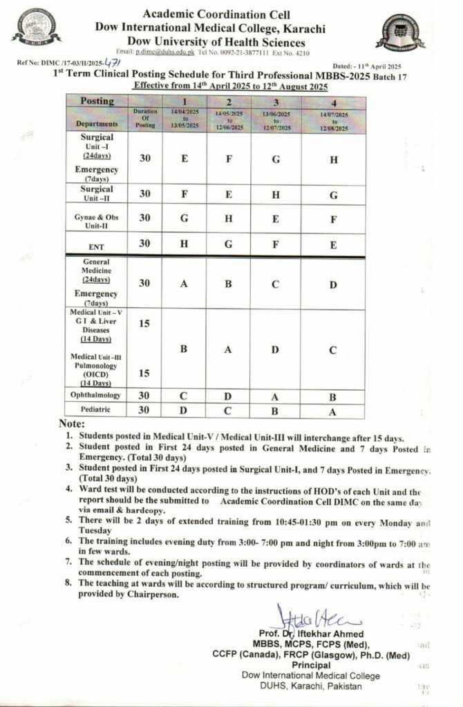 Clinical Posting Schedule for Third Professional MBBS 2025 Batch 17