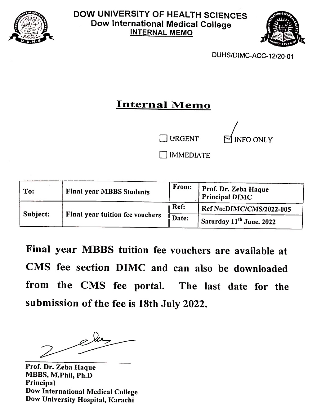 Final Year MBBS Students Fee Vouchers