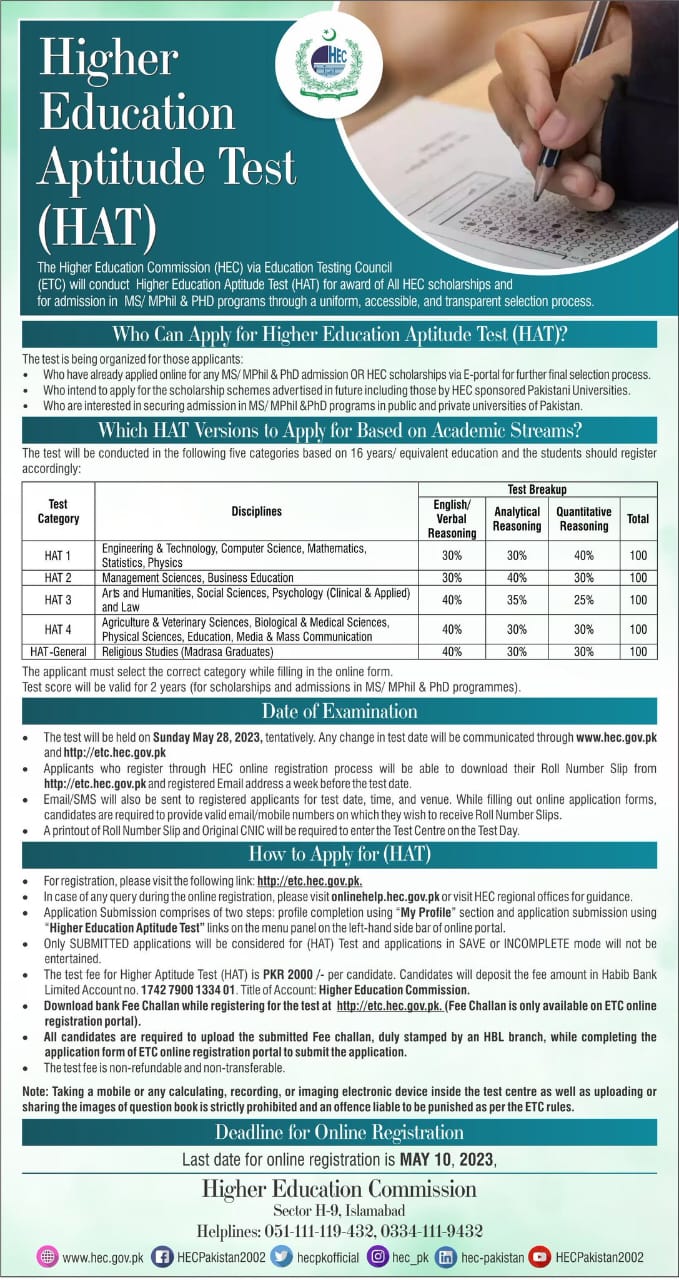 • Higher Education Aptitude Test (HAT)