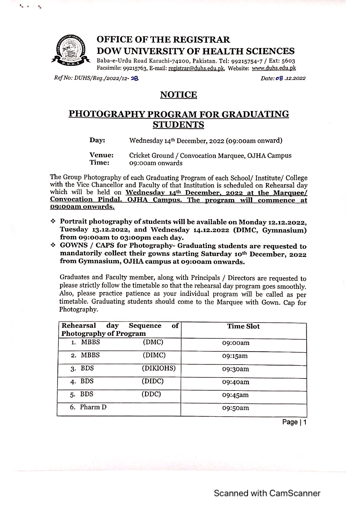 Notice – Photography Program for Graduating Students