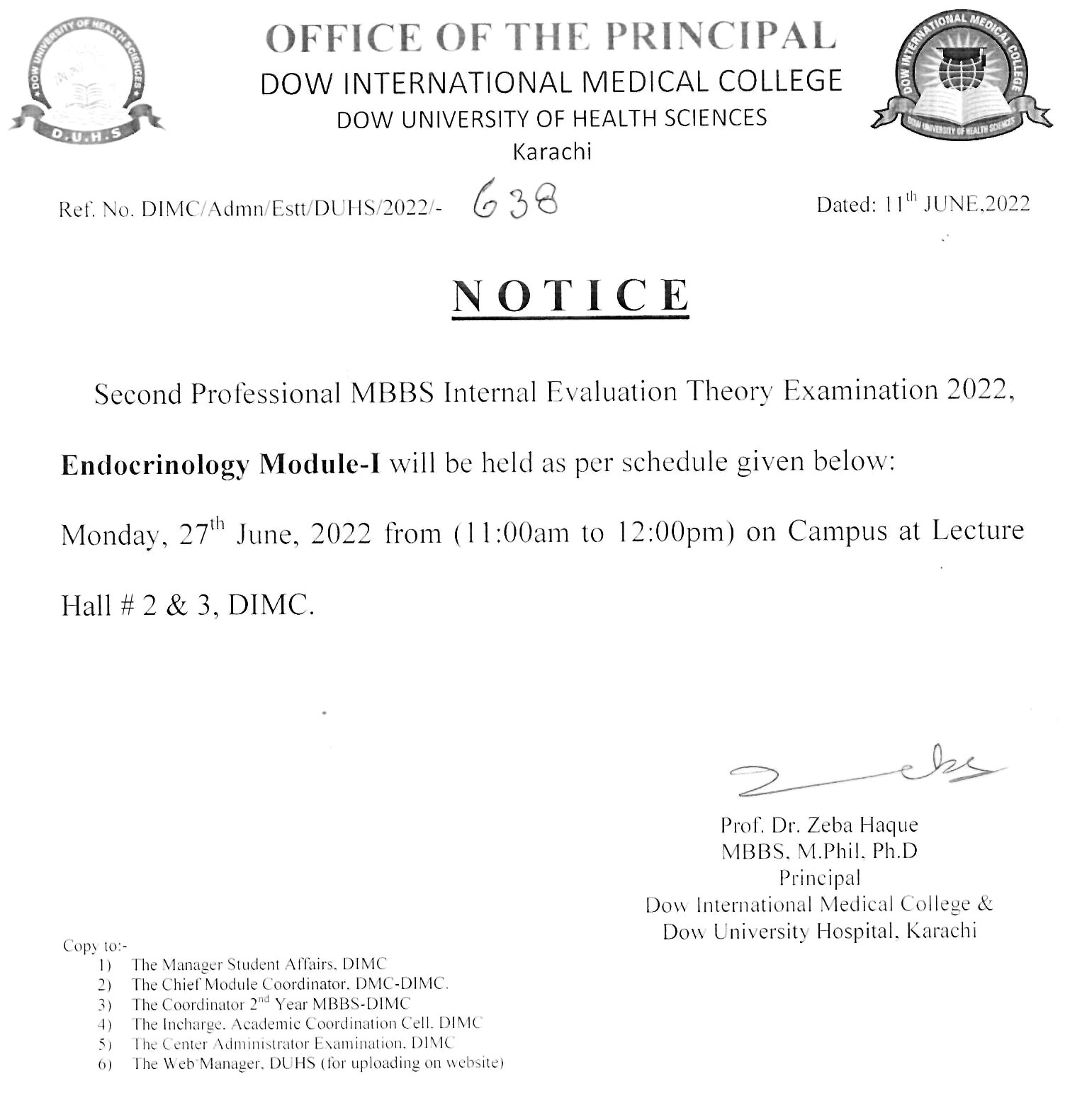 NOTICE – Second Professional MBBS Internal Evaluation Theory Examination 2022