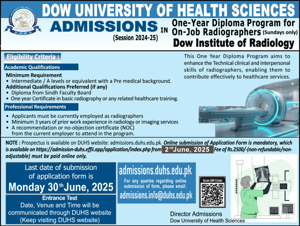 Admissions in One Year Diploma Program for On-Job Radiographers at Dow Institute of Radiology