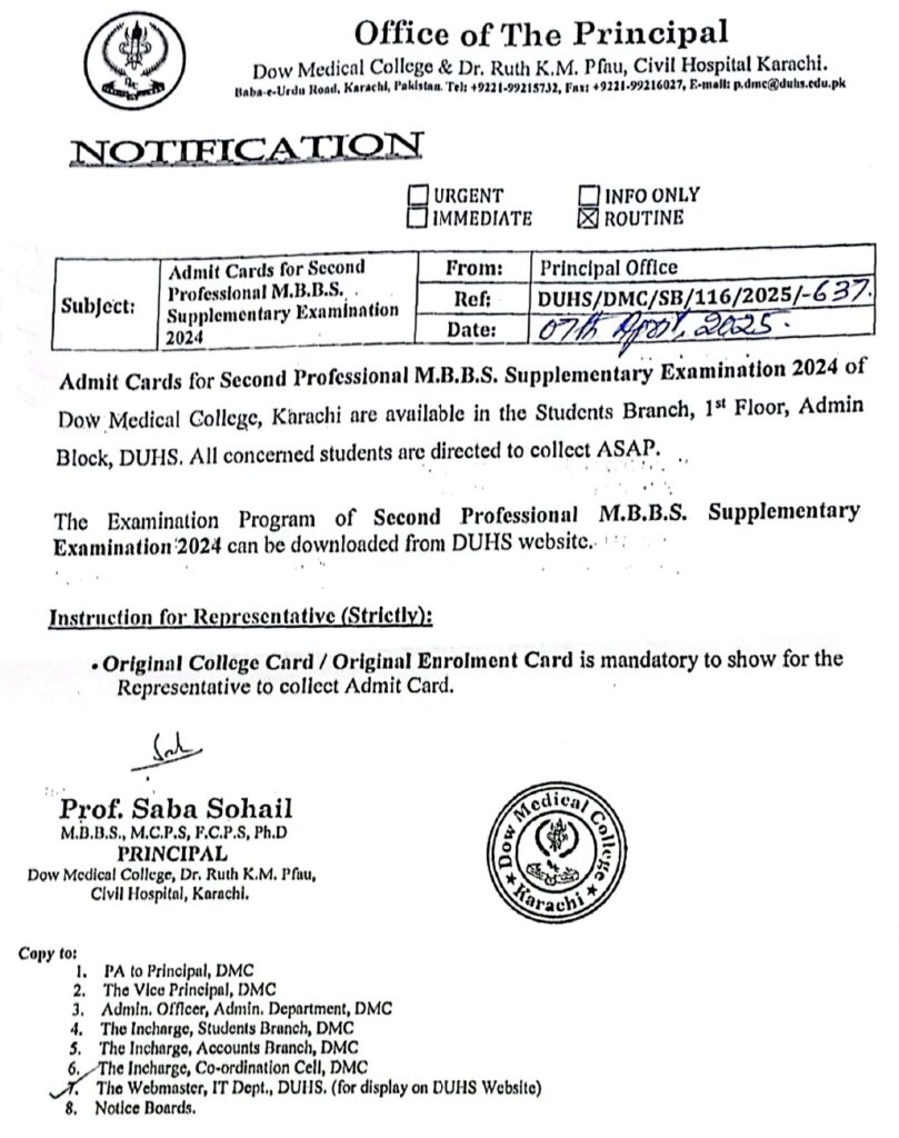 Admit Cards for Second Professional MBBS Supplementary Examination 2024