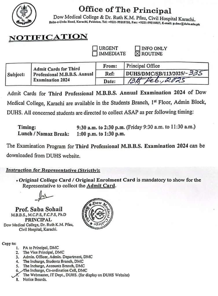 Admit Cards for Third Professional MBBS Annual Examination 2024