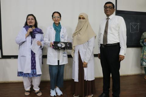 An appreciation ceremony was organized by Prof. Saba Sohail, Principal, Dow Medical College on the 21st September, 2023 with the coordination of Prof. Fuad Shaikh, Controller of Examinations at Dow University of Health Sciences, to reward and acknowledge three students of Dow Medical College, for their extraordinary performance as top achievers, in their respective Professional MBBS Sessions in 2022.