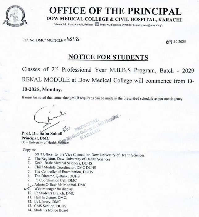 Classes of 2nd Professional Year MBBS Program