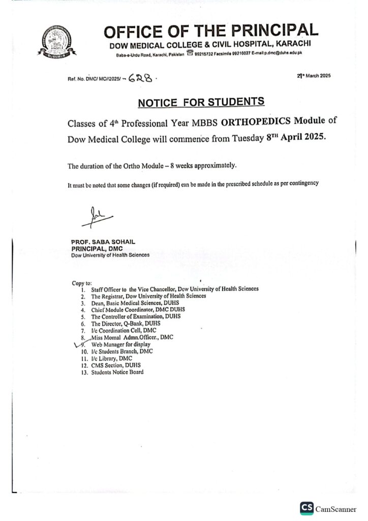 Classes of 4th Professional Year MBBS Orthopedics Module