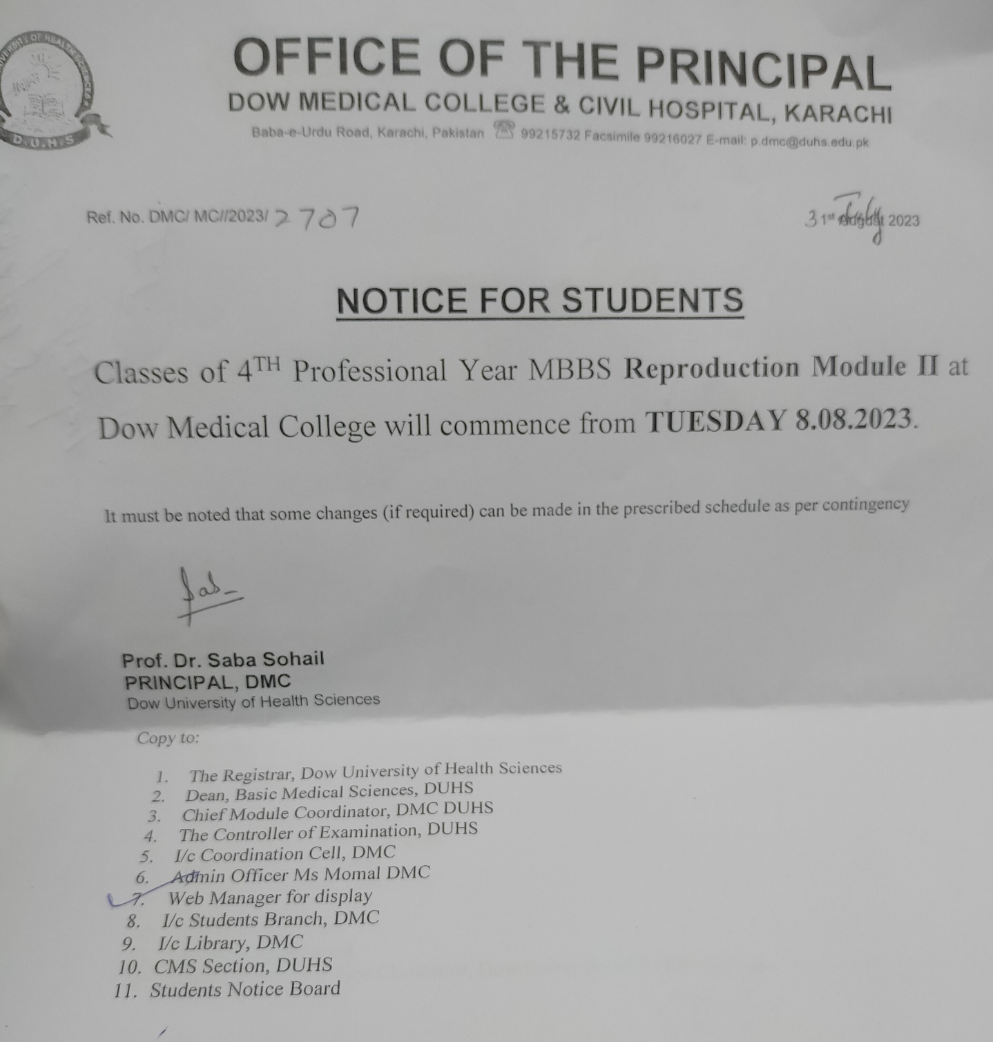 Classes of 4th Professional Year MBBS Reproduction Module II