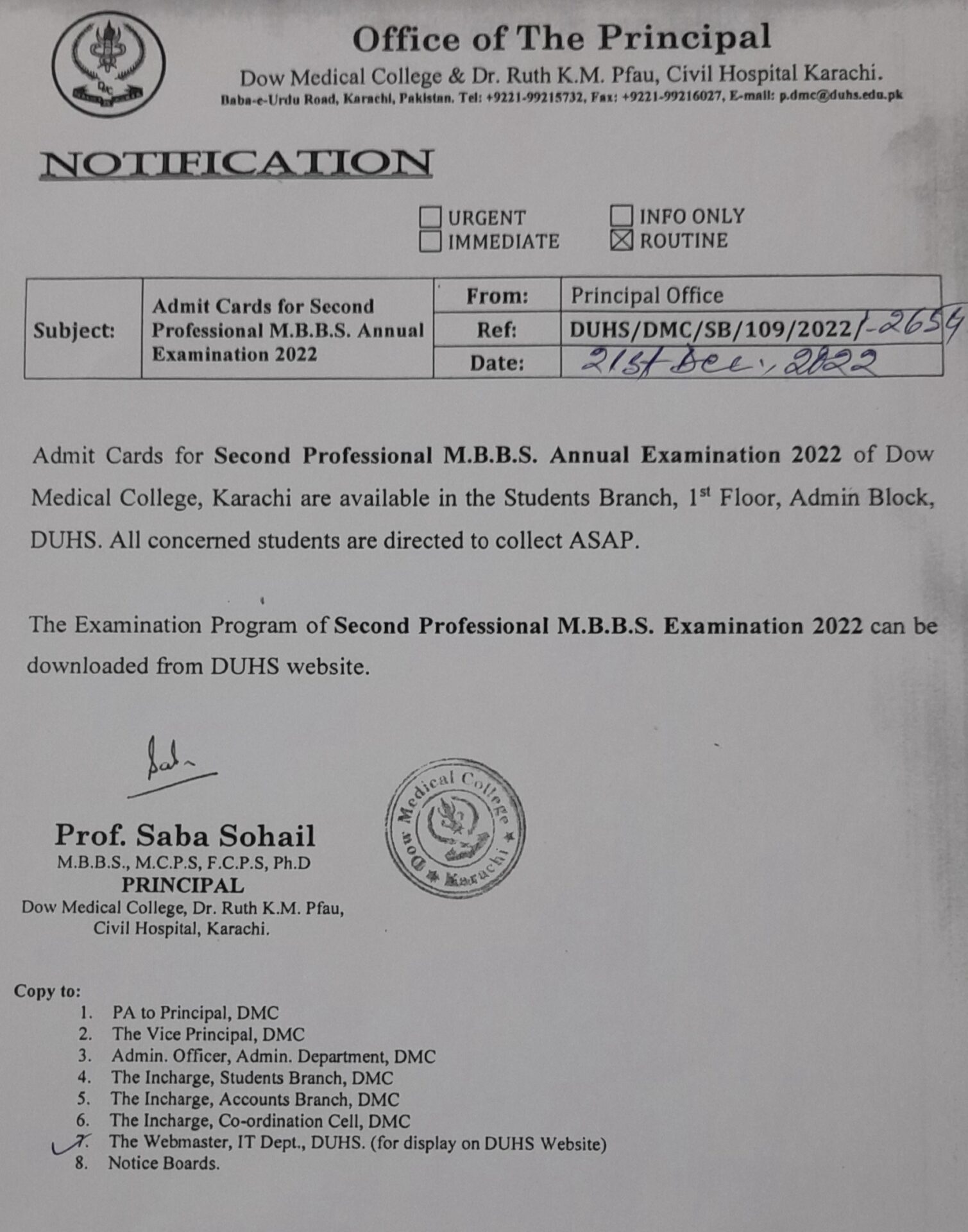 [DMC] Admit cards for Second Professional MBBS Annual Examination 2020