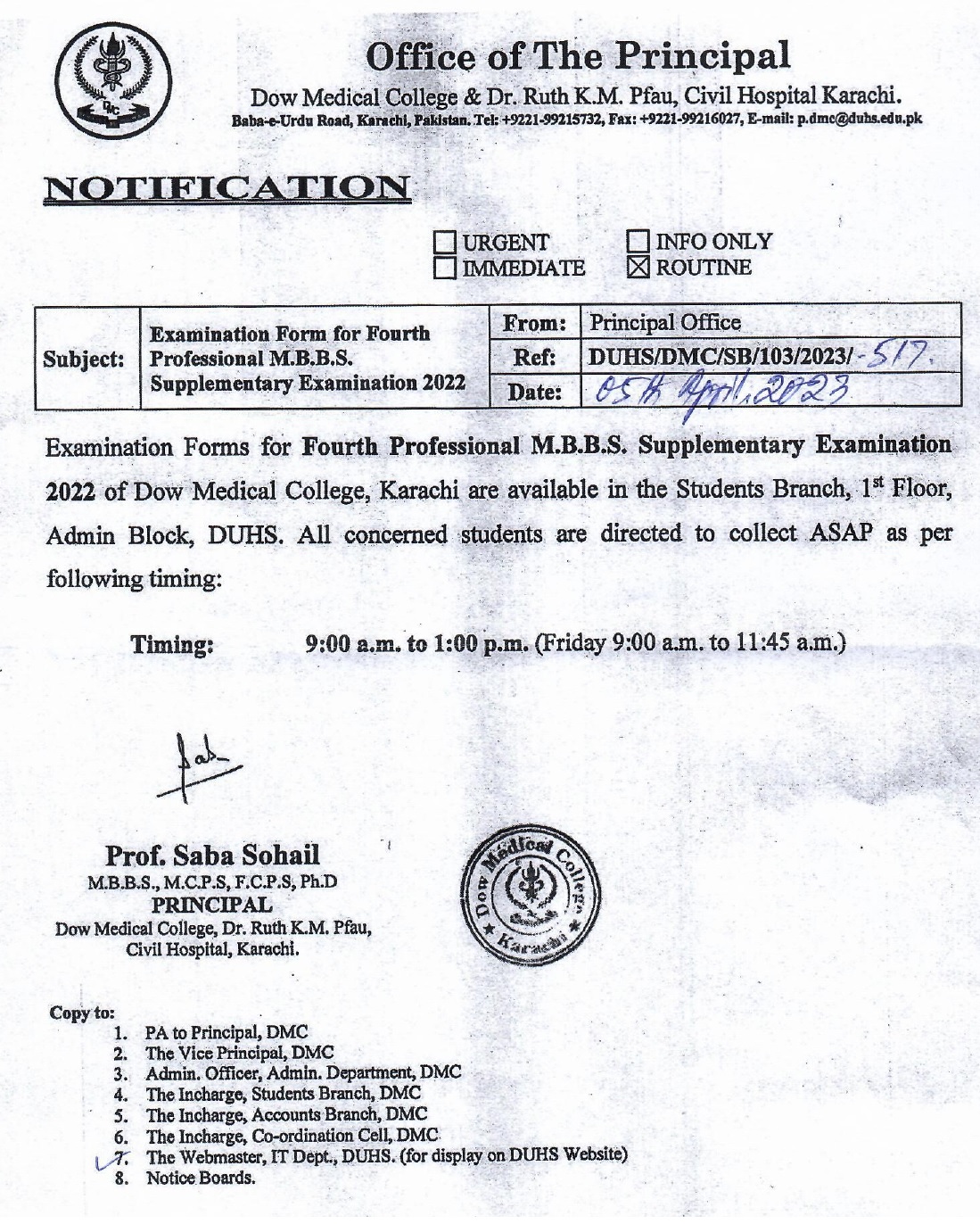 Examination Form for Fourth Professional MBBS Supplementary Examination 2022