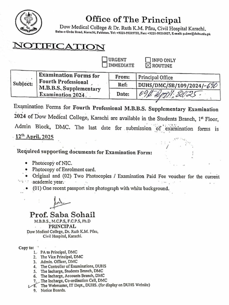 Examination Forms for Fourth Professional MBBS Supplementary Examination 2024