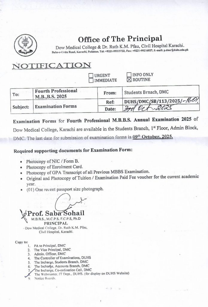 Examination Forms for 4th Professional M.B.B.S Annual Examination 2025