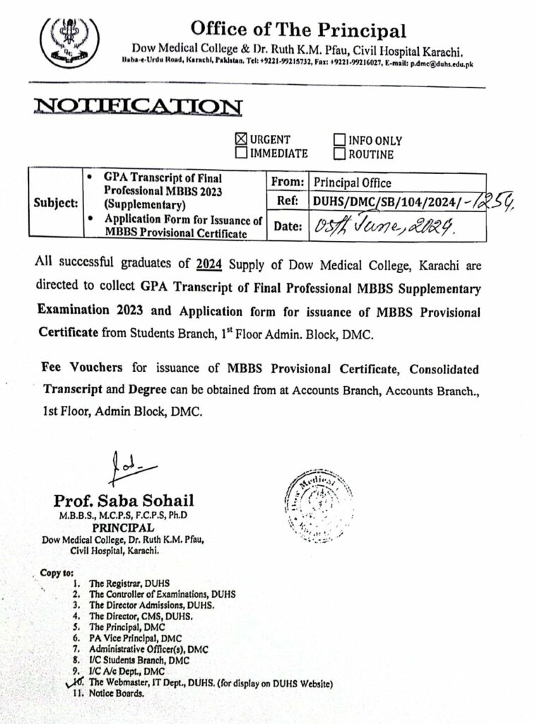 GPA Transcript of Final Professional MBBS 2023 (Supplementary)