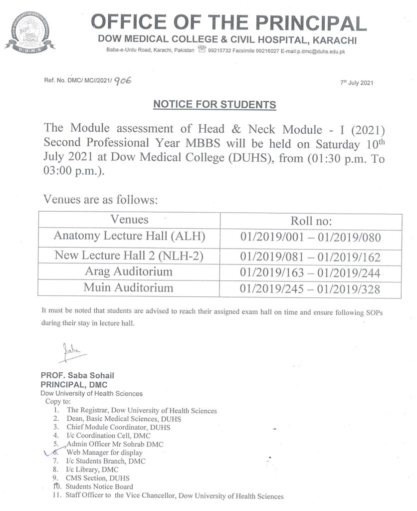 Module Assessment of Head & Neck Module-I 2021 Second Professional Year MBBS