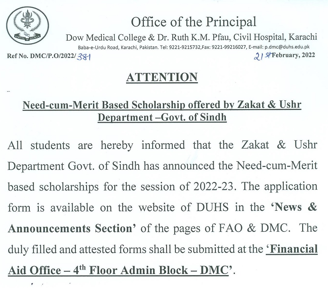 Need Cum-Merit Based Scholarships Under Zakat and Ushr Department