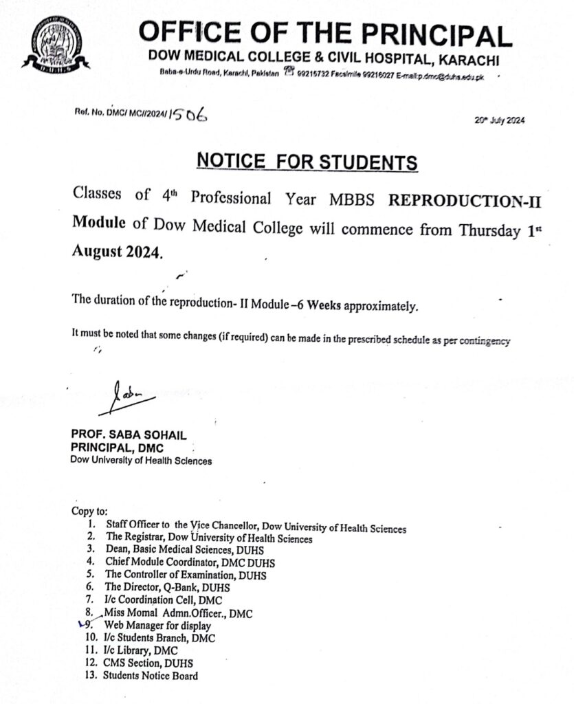 Notice for Students – Classes of 4th Professional Year