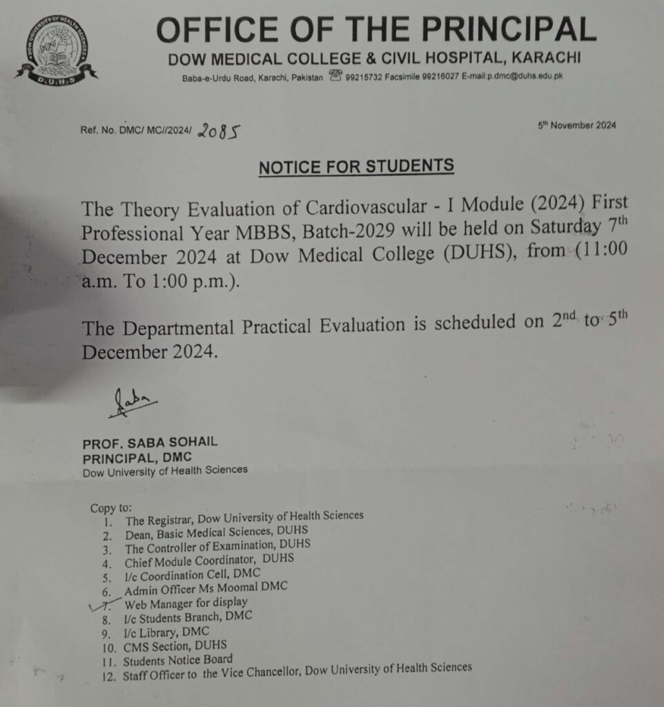Notice for Students – Theory Evaluation of Cardiovascular – I Module (2024)