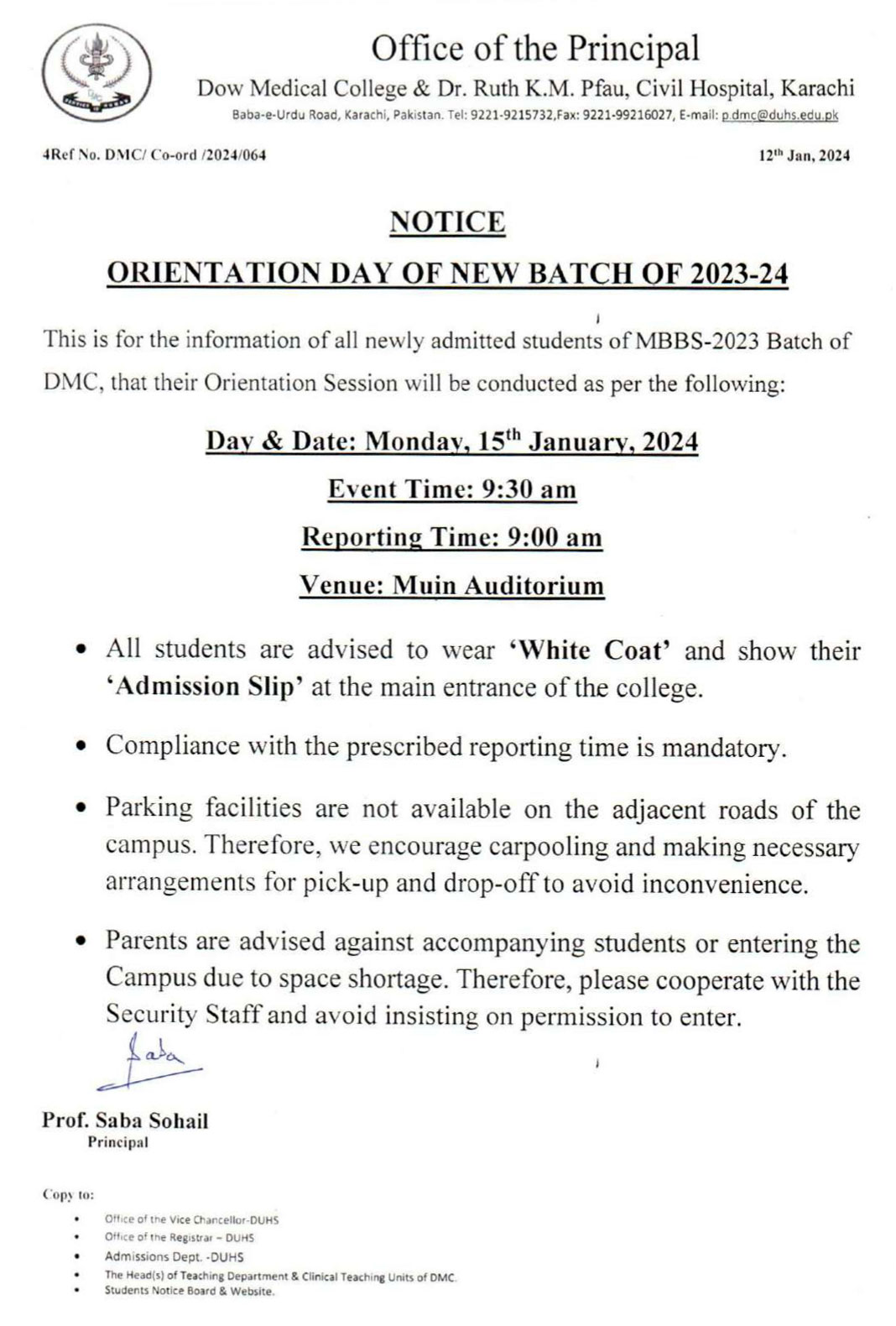 NOTICE – ORIENTATION DAY OF NEW BATCH OF DMC 2023-24