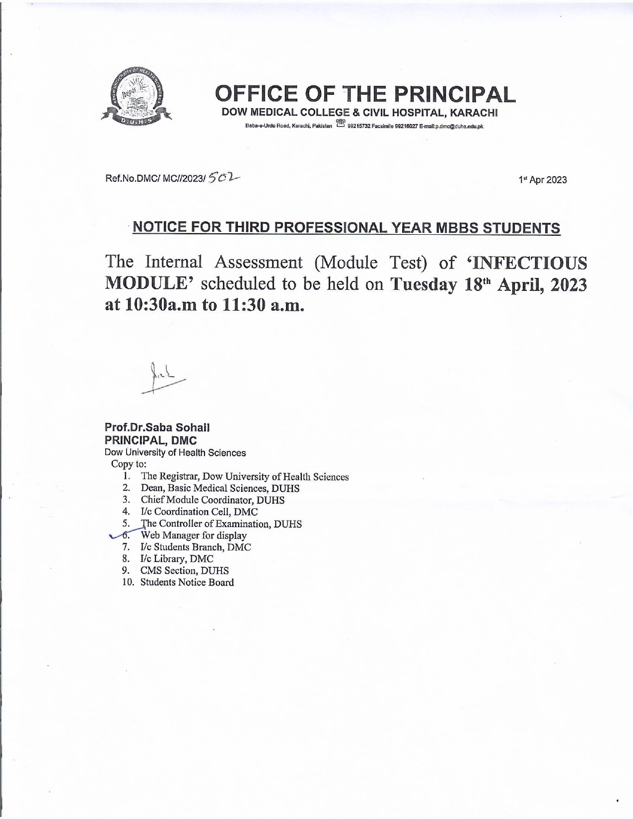 Notice – Third Professional Year MBBS