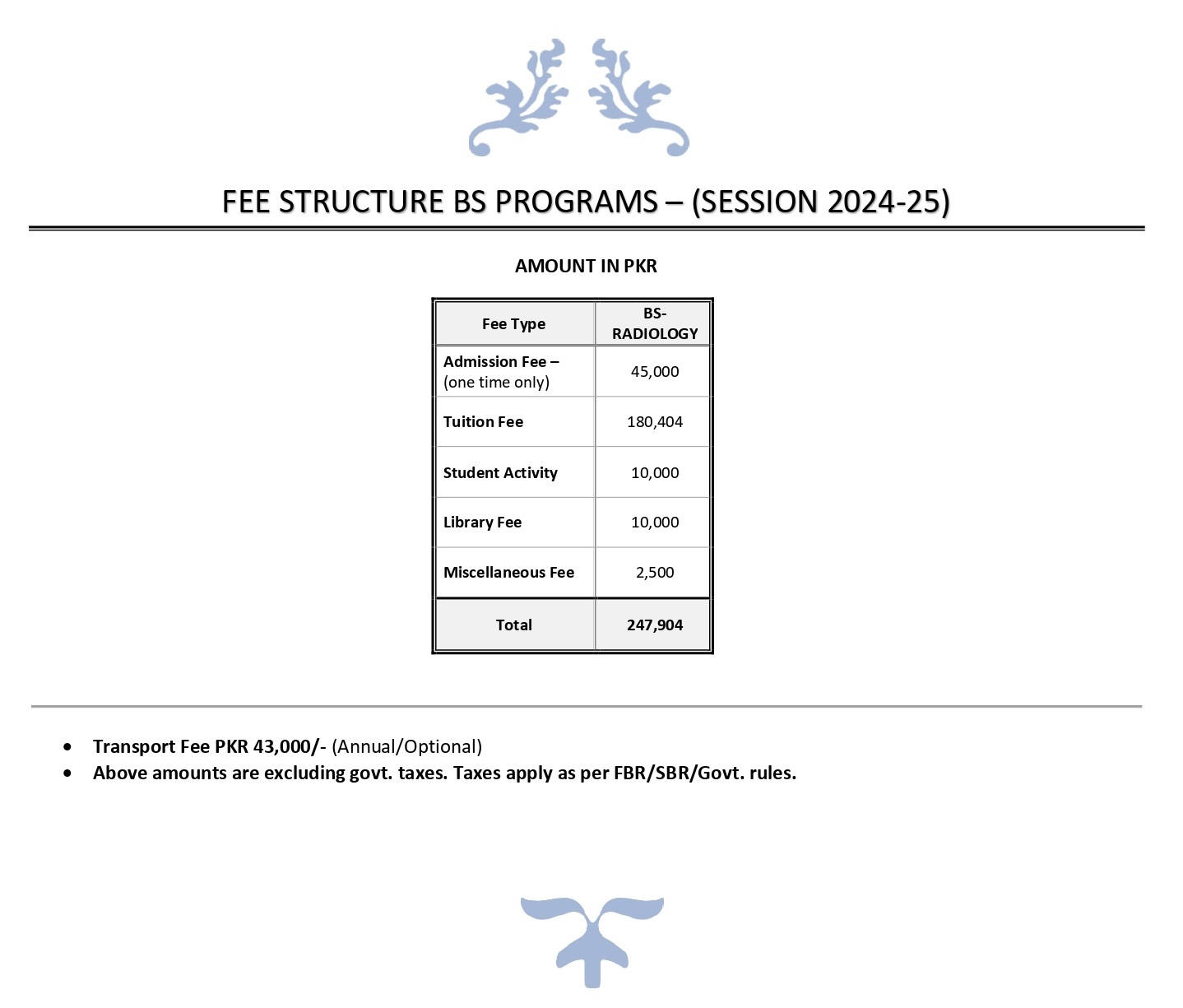 Admissions in One Year Diploma Program for On-Job Radiographers at Dow Institute of Radiology