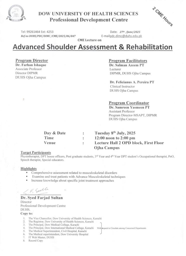 [CME] Lecture on “Advanced Shoulder Assessment & Rehabilitation”