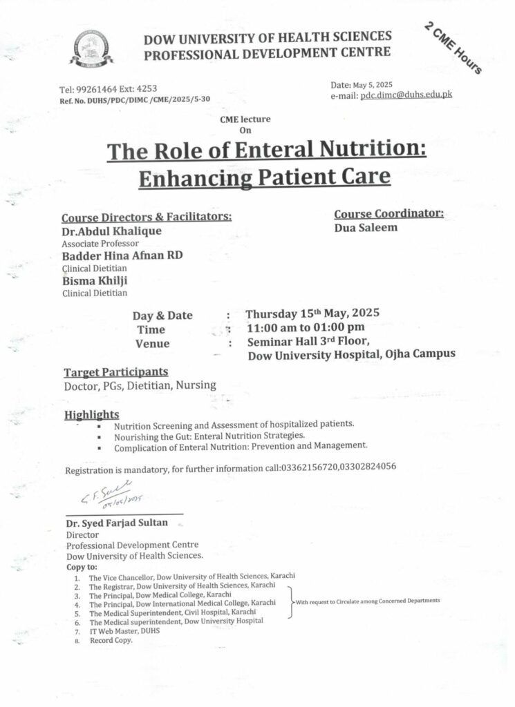 CME Lecture On “The Role of Enteral Nutrition: Enhancing Patient Care”