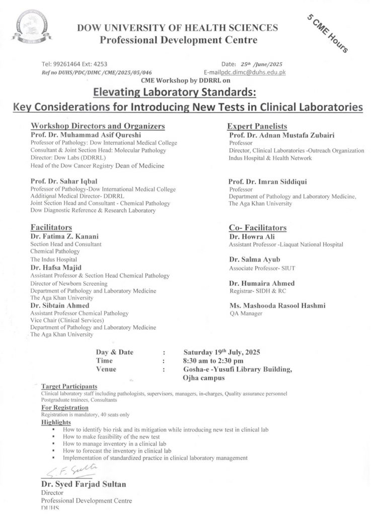 [CME] Workshop by DDRRL on “Elevating Laboratoy Standars:”