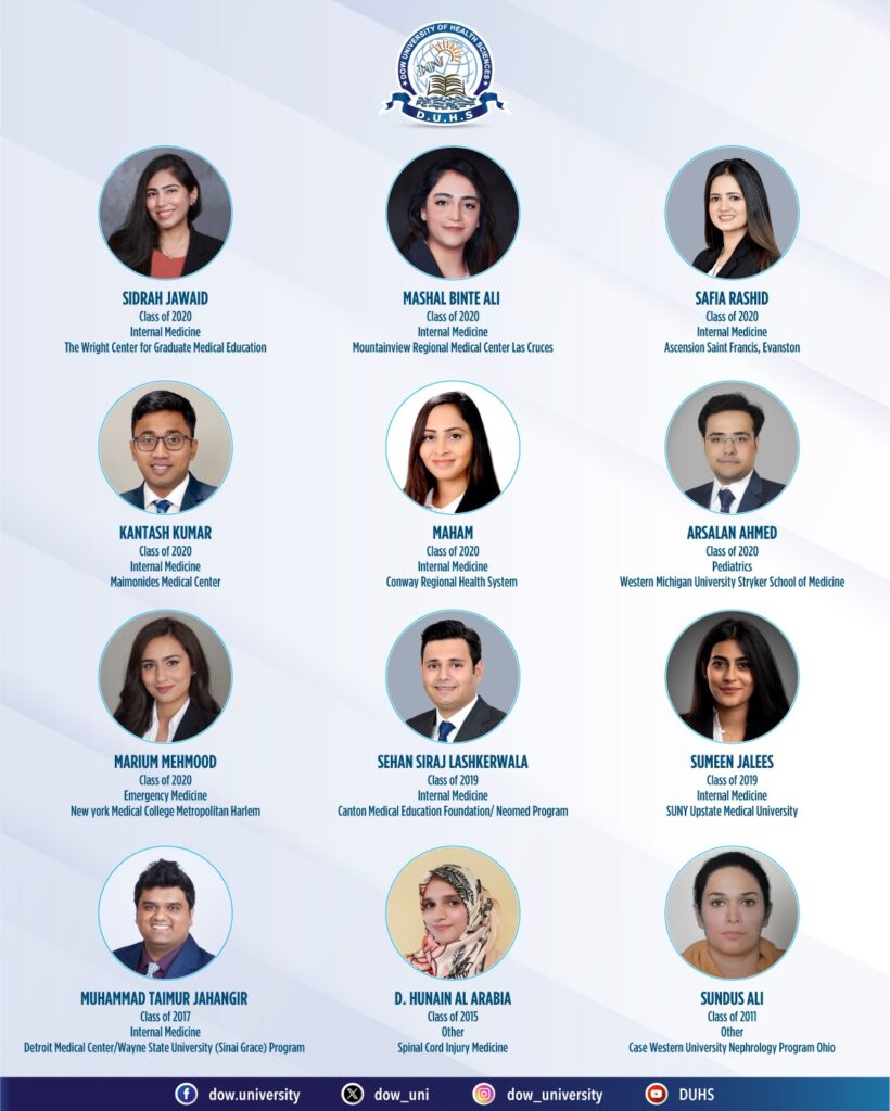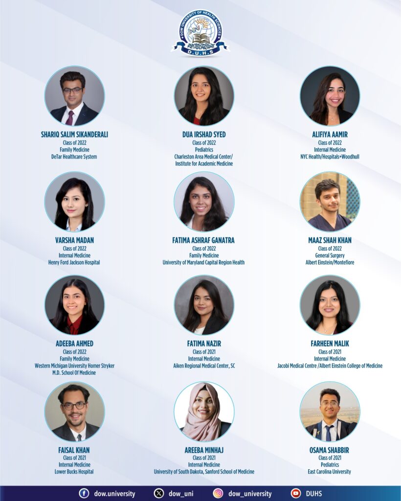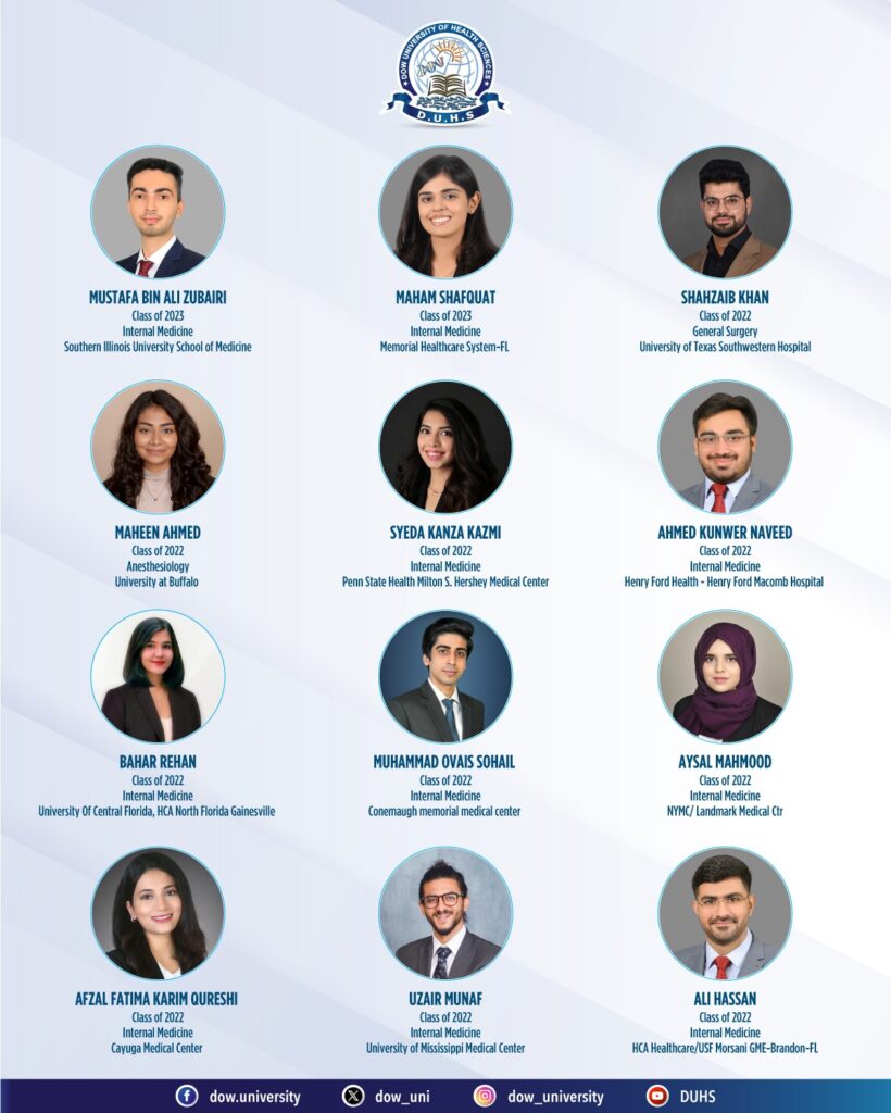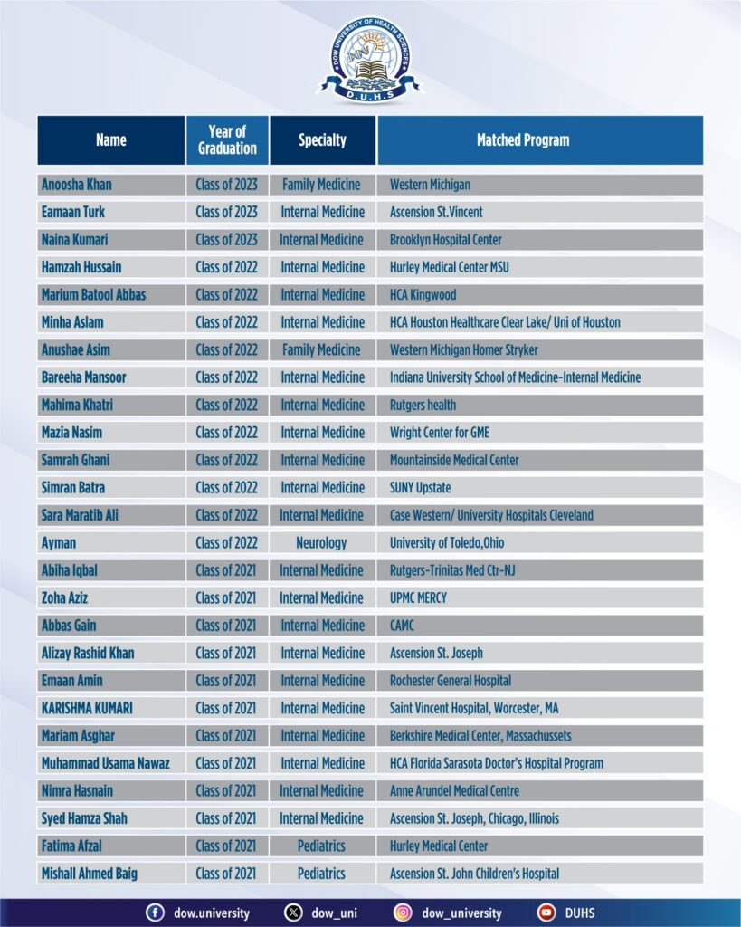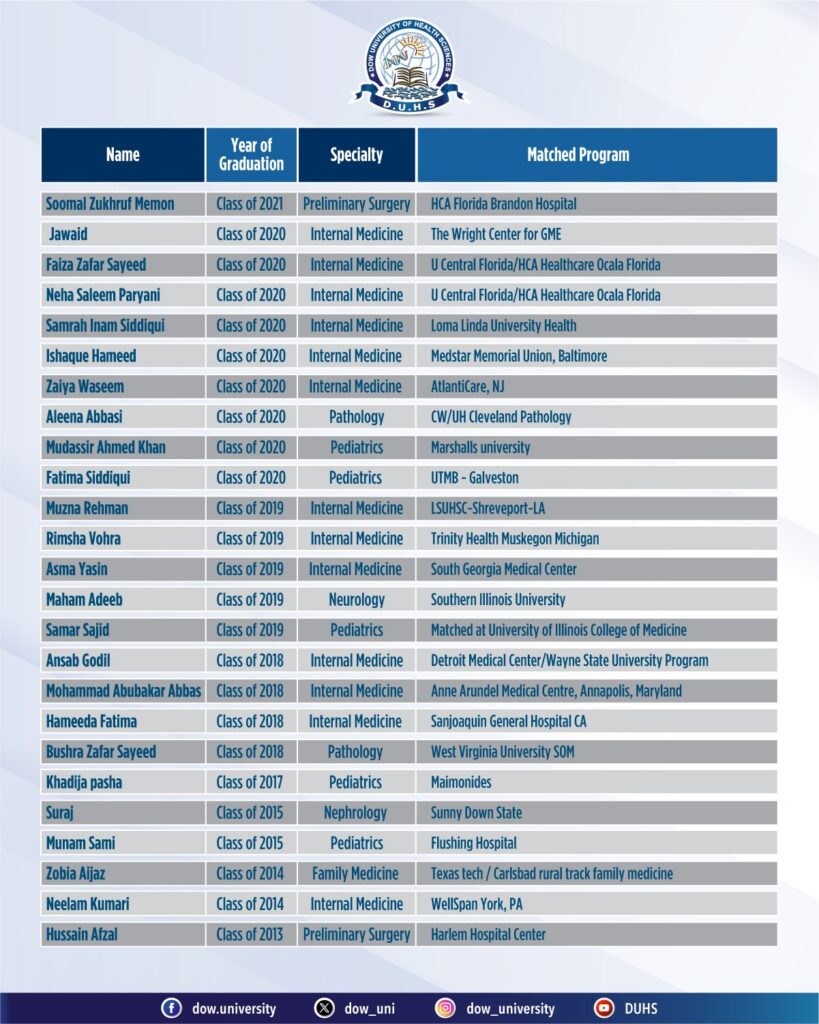 We are extremely proud of our alumni from Dow University of Health Sciences who have been matched into residency programs in the USA.