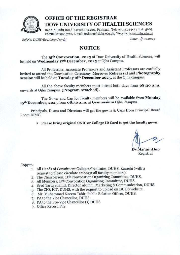 This is to notify that the Convocation of Dow University of Health Sciences is going to be held on Saturday,... read more