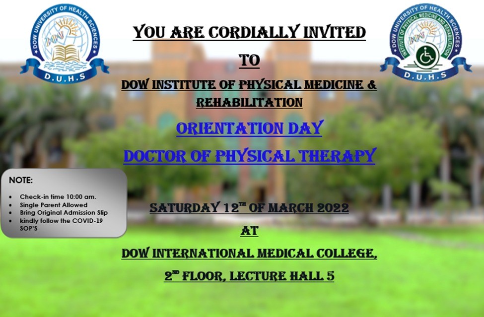 Orientation Day – Doctor of Physical Therapy (DPT) at Dow Institute of Physical Medicine & Rehabilitation (DPT) (Session 2021-22)