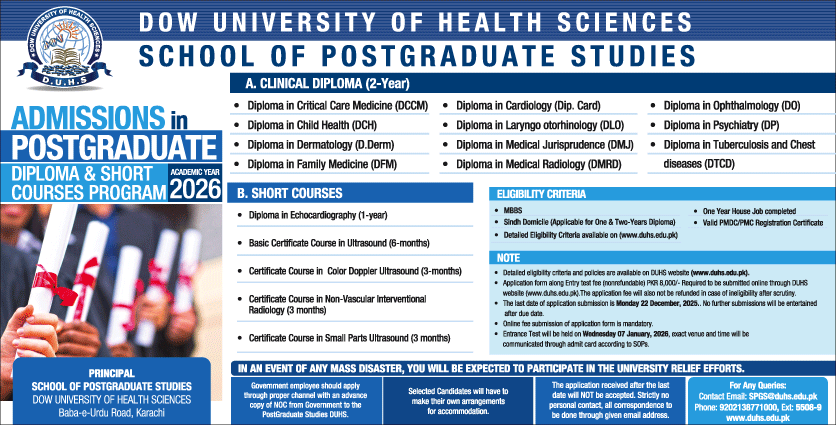 ADMISSIONS FALL 2024 (POSTGRADUATE) INSTITUTE OF BUSINESS AND HEALTH MANAGEMENT (IBHM), DUHS