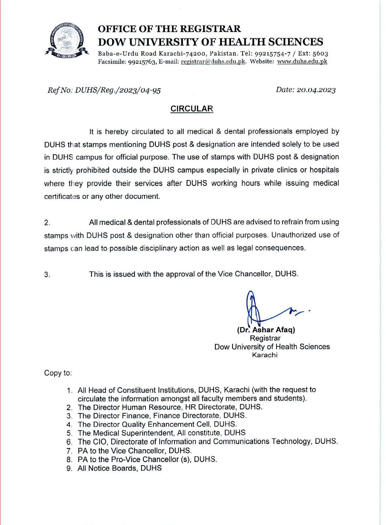 [REGISTRAR OFFICE] CIRCULAR-04-95 – Dated – 20.04.2023