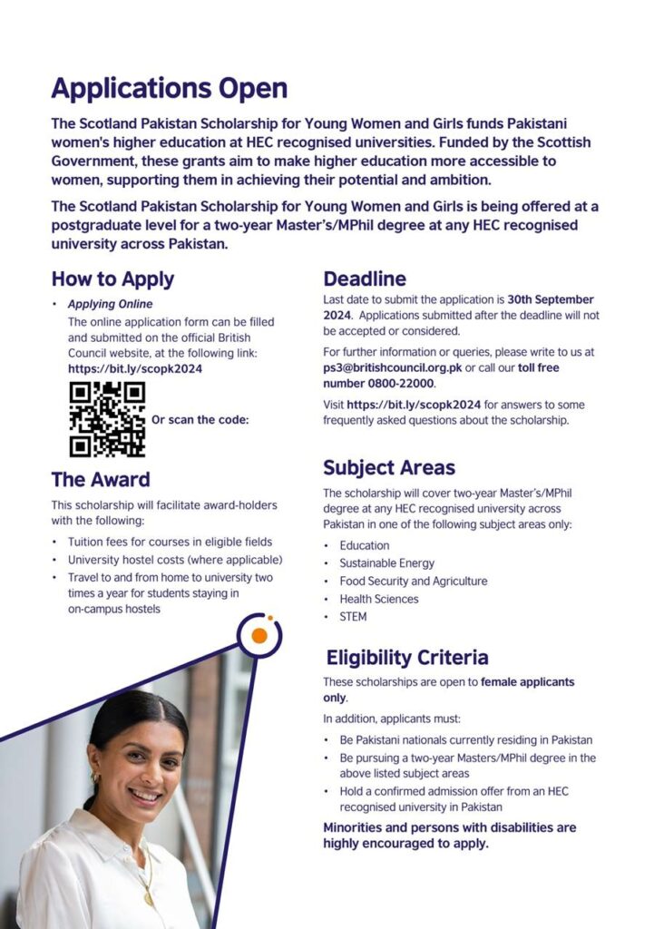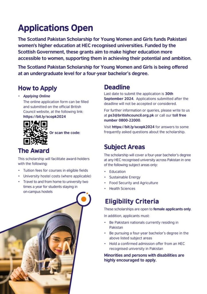 Scotland Pakistan Scholarship Scheme for Young Women and Girls 2024-25.