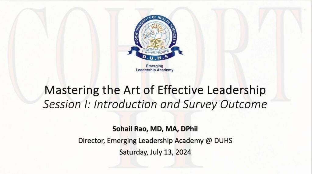 After successfully graduating its first cohort of twenty-four (24) students in May 2024, the Emerging Leadership Academy, Dow University of Health Sciences (DUHS) initiated engagement with selected students in an innovative and novel program entitled “Mastering the Art of Effective Leadership”. 190 Students from 16 colleges, schools, and institutes at DUHS applied for enrollment in this coveted program. After careful review of applications (which included an interview) only 28 students were selected in the second cohort.